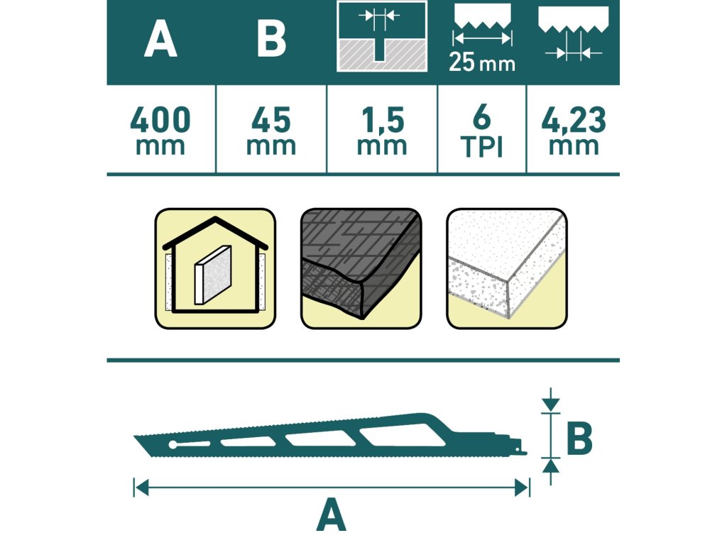 plátek do pily ocasky na izolační mat./oboustranný, 400x45x1,5mm, nerez