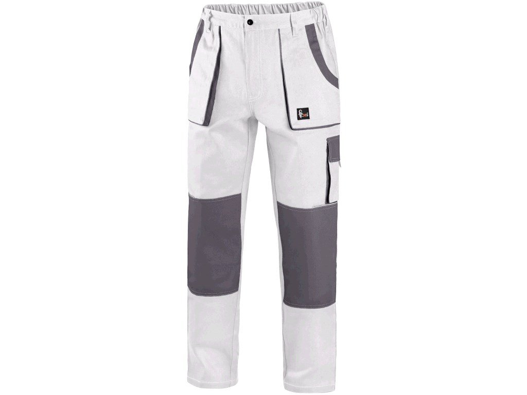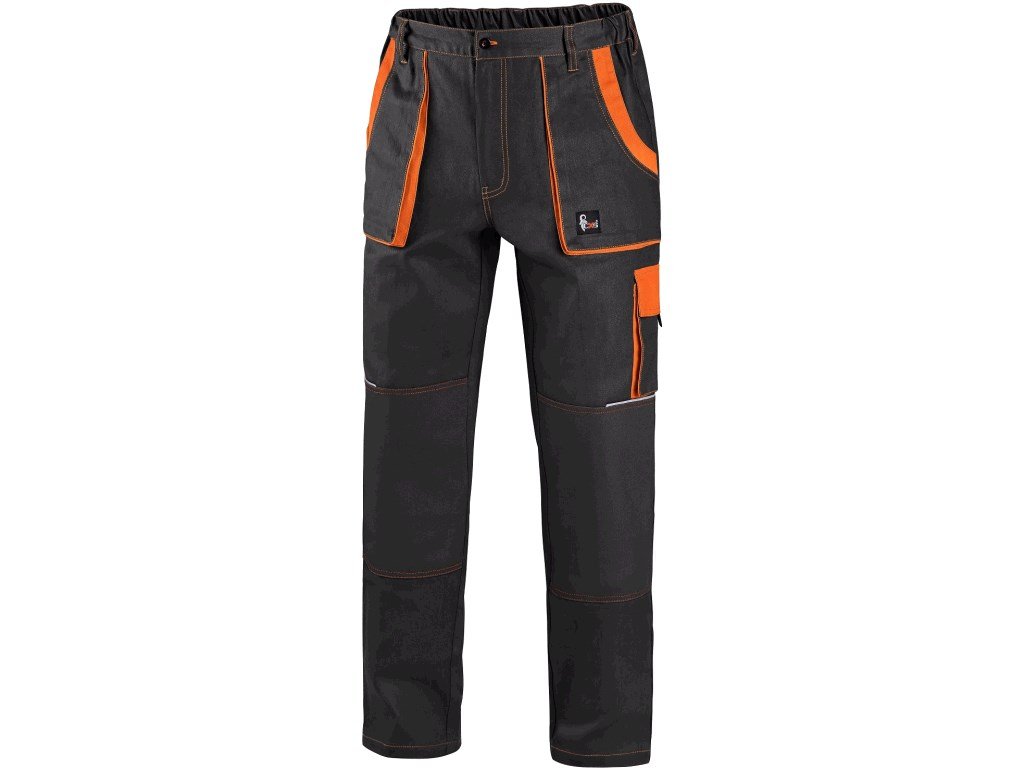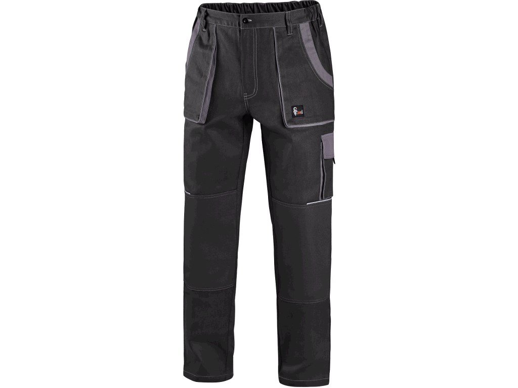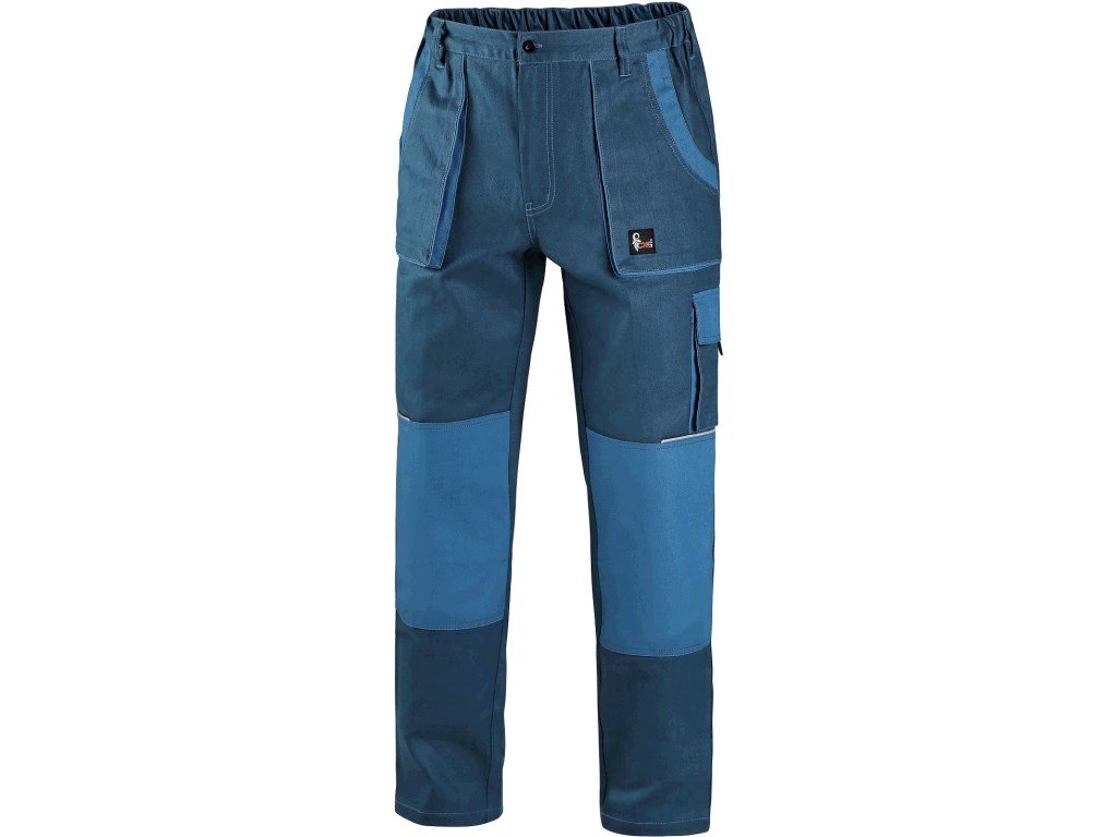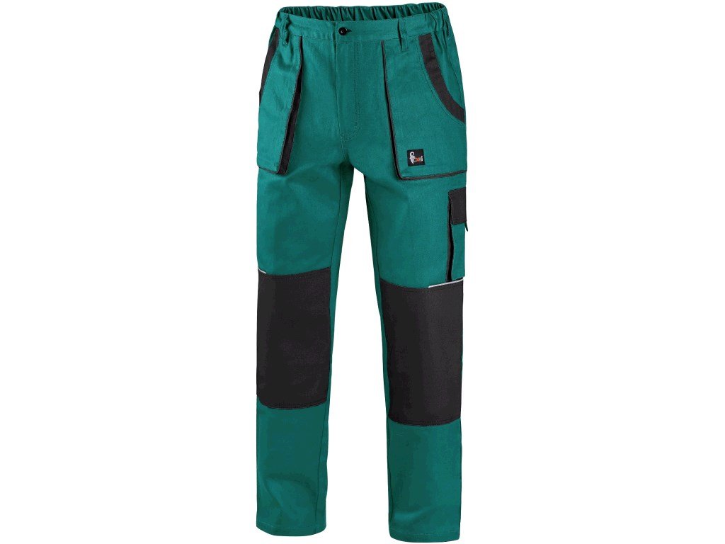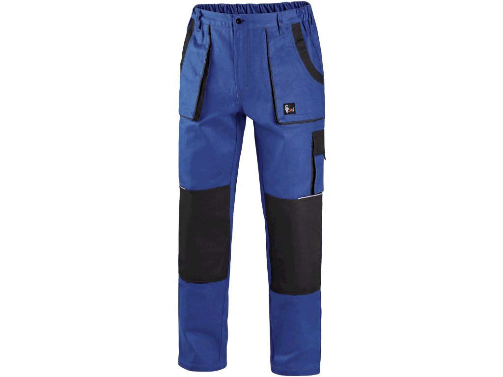 Pánské montérkové kalhoty, pas s poutky na opasek, vzadu do gumy, přední kapsy, boční kapsa na svinovací / skládací metr, boční kapsa na mobil / peněženku, zdvojená kolena, zadní kapsa s klopou, reflexní doplňky.Doporučené použití: stavebnictví, le