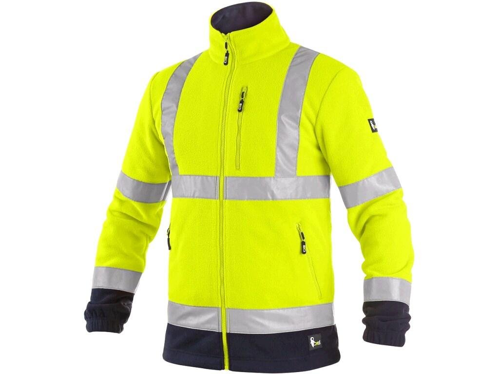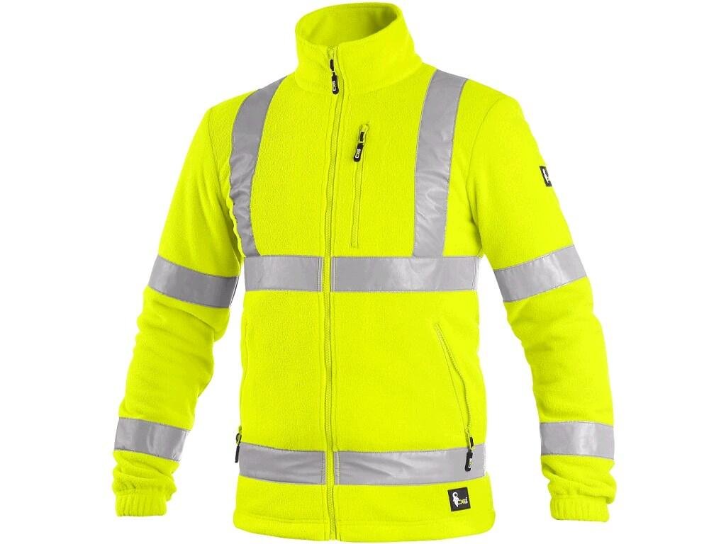 Pánská výstražná fleecová bunda s reflexními pruhy. Rukávy do gumy, boční i náprsní kapsy na zip, stahování v dolním okraji, podšívka ze síťoviny. Doporučené použití: stavebnictví, silničáři, řidiči, letecká a lodní doprava, logistika, řidiči kamionůDoplňkové parametry