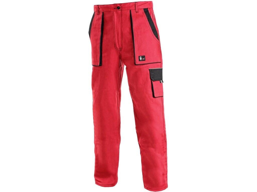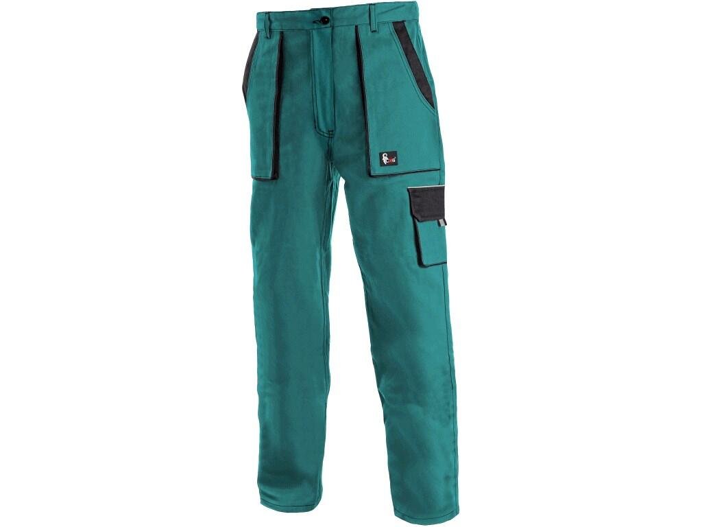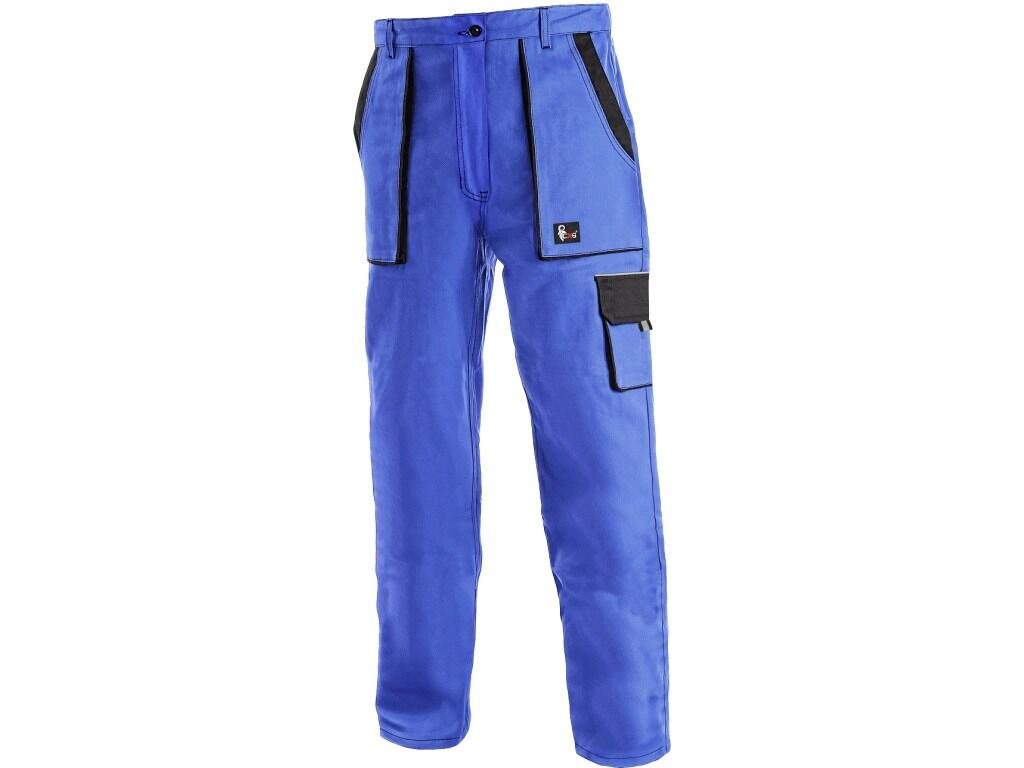 Dámské kalhoty do pasu, zdvojená kolena, pevný pas vzadu do gumy s poutky na opasek, přední vakové kapsy, boční kapsy na metr a na mobil.Doplňkové parametry