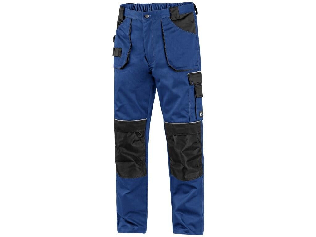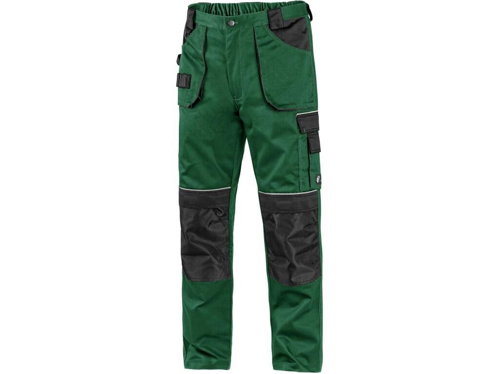 Pánské kalhoty do pasu, s poutky na opasek, zdvojená kolena s možnostívložení kolenních výztuh, našité kapsy, klínové přední kapsy a zasunovací