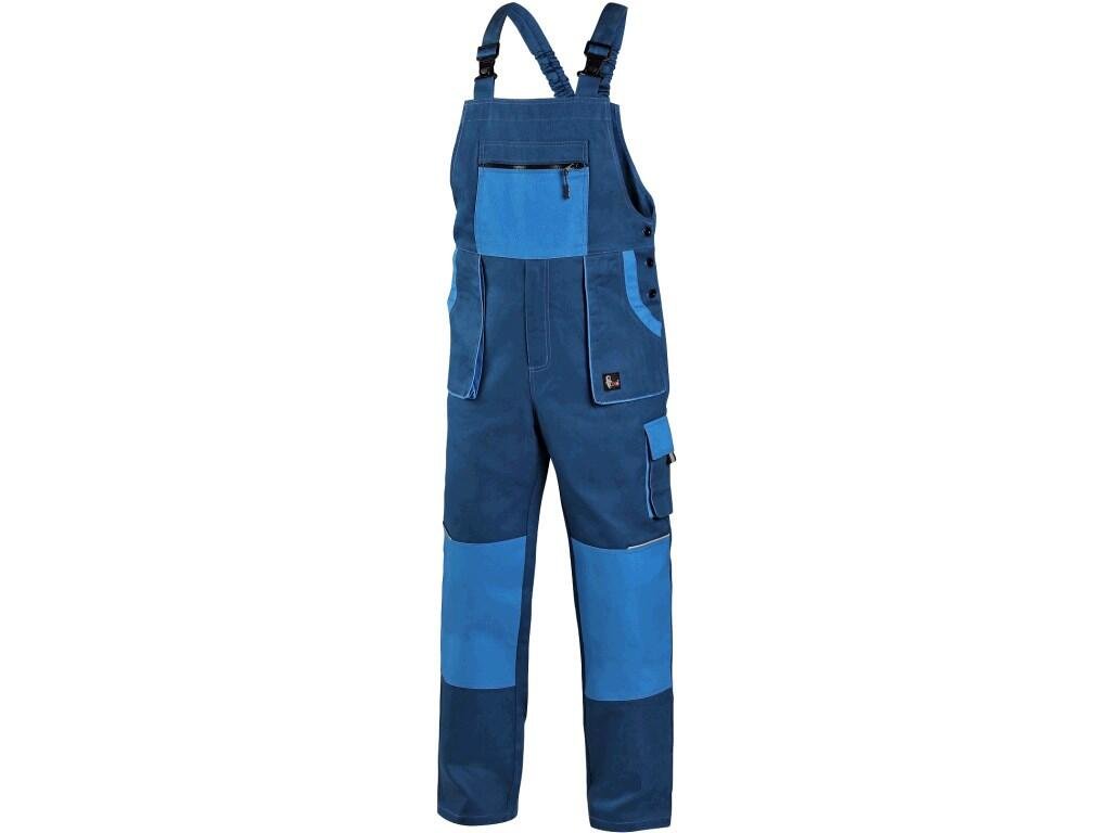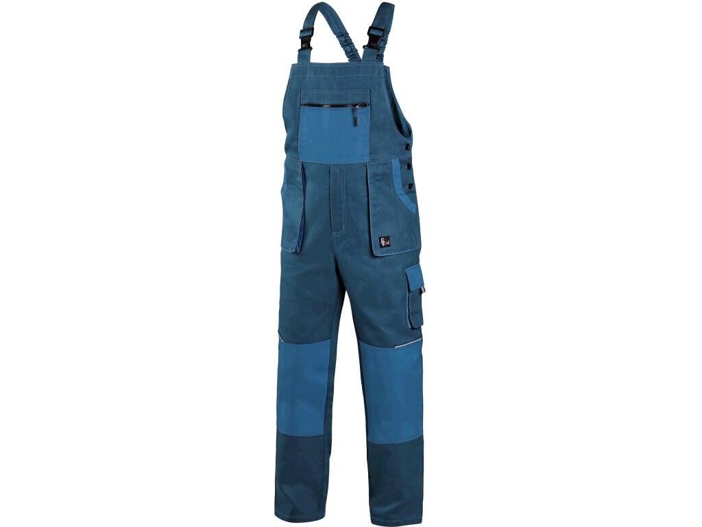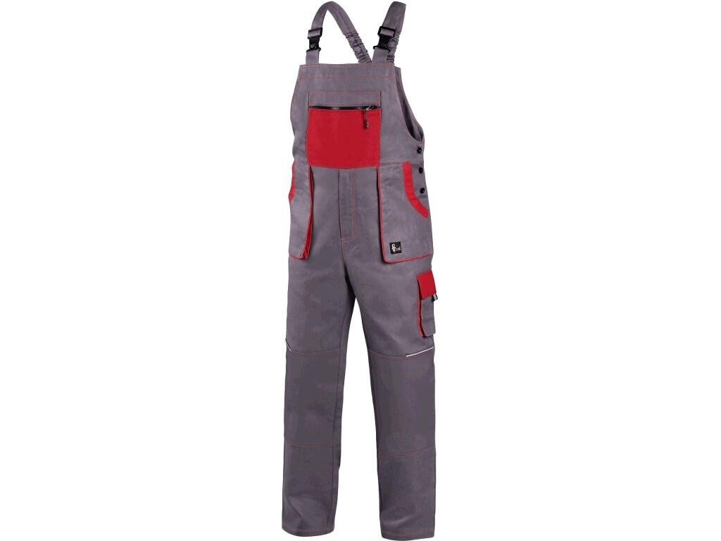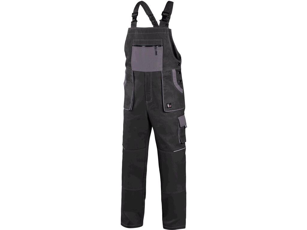 Pánské s náprsenkou, zdvojená kolena, přední našité kapsy, náprsní kapsa na zip, boční kapsy na metr a na mobil, pas v zadní části do gumy.Doplňkové parametry