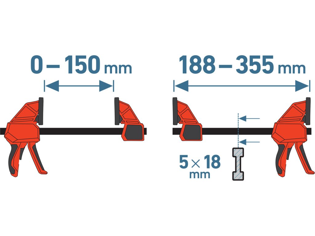 | doplňující parametr: | pracovní rozsahy: sevření 0-150mm, rozepření 188-355mm |
